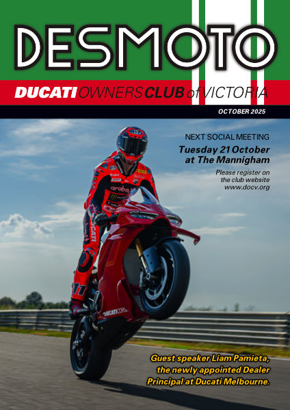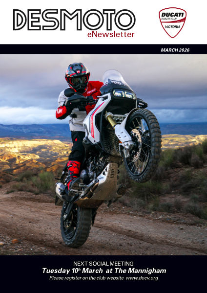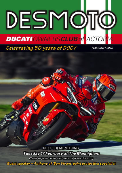 DESMOTO is our unique and free to all DOCV members, world class electronic publication. It is now in its 45th year. It's put together by club members, for club members and provides rich and varied content which is greatly enjoyed. For decades, DESMOTO has been arriving in club member's letterboxes. In recent years the PDF version gained increasing popularity, and in 2020 the club decided to go digital-only, giving us the opportunity to add rich media content like videos and links to websites. The entire archive of past editions all the way back to 1976 is available for members to read and download as PDF. The Editor (a committee member and volunteer) collates, sources and cajoles articles – mostly from members, but also from others in the motorcycle trade, media and other relevant areas. The result is a ~40 page colour magazine which is distributed to our members, advertisers and sponsors just before the social meeting each month in February, April, June, August, October, and December The latest edition can always be found on this page, see below. |